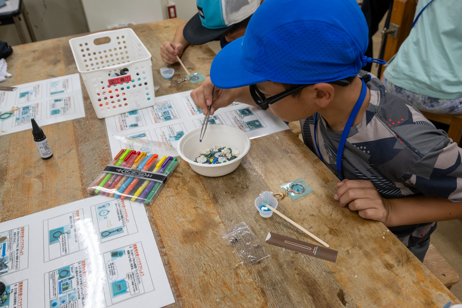 海辺の漂着物(人工物・自然物)を活用し、キーホルダーづくりを行う。